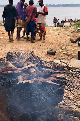 | Waiting for the ferry to cross the Congo River Warten auf die Kongo Fähre |